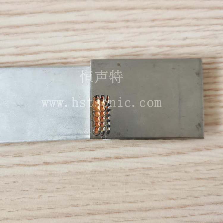 2.5mm鋁片與銅片超聲波點焊機焊接樣品如下: