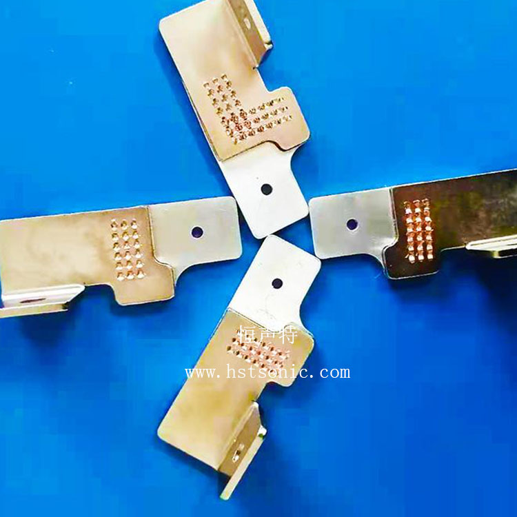 極耳超聲波焊接機焊接后的耳和片表面平整,無褶皺,背面無凸起的毛刺,焊點飽滿清晰,牢固可靠,焊點位置不破裂;