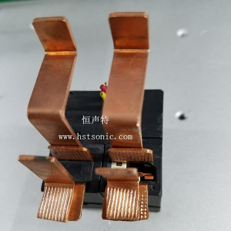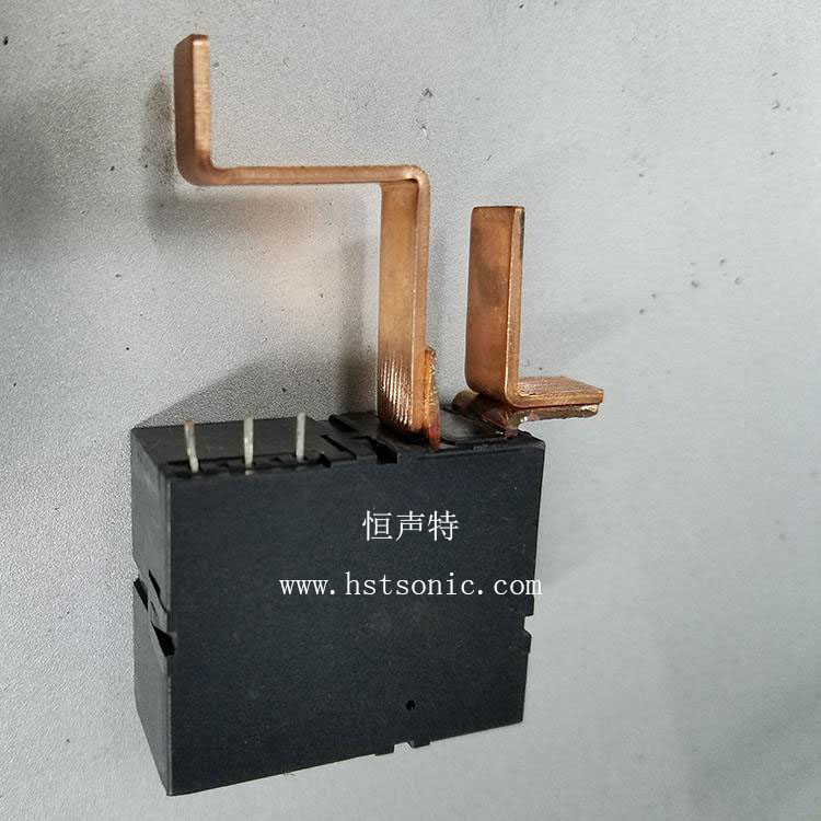 繼電器引腳與銅片焊接超聲波點焊機搭接壓合,焊點牢固不脫落。
