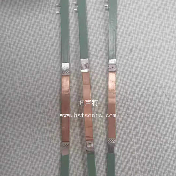 超聲波鋁片與銅片焊接超聲波點焊機操作簡單,將金屬片放在下工裝處,啟動按鈕,設備在設定好的參數下完成壓接。