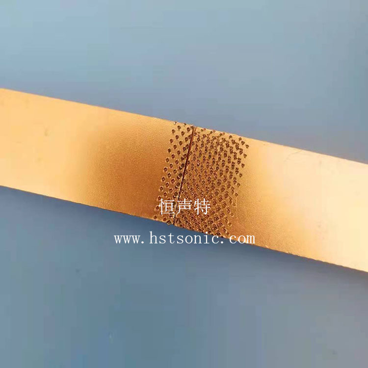 1.5mm紫銅銅片超聲波點焊機操作簡單,將紫銅片放在下工裝處,啟動按鈕,設備在設定好的參數下完成壓接。