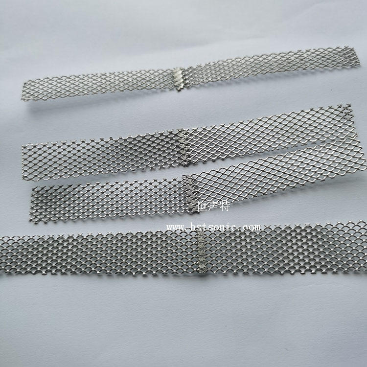 鋁濾網(wǎng)搭接超聲波點焊機焊接表面呈規(guī)則痕跡(可定制),背面呈網(wǎng)紋狀(非平面),壓接形狀見下圖。