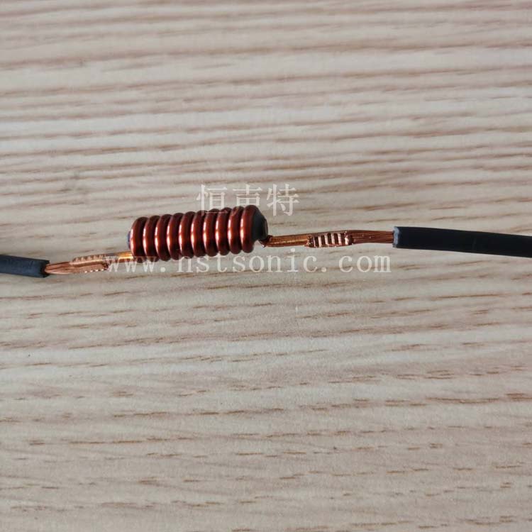 電感與銅線焊接是利用超聲波線束搭接焊接設備組成的,將兩根銅線焊接在電感引線上,超聲波焊接強度牢固,適合用20K3000W超聲波線束焊接機焊接。電感與銅線超聲波搭接焊后經過拉力測試,強度達到客戶的要求。先焊接一側銅線。再焊接另一側銅線,用超聲波線束焊接機壓方成型。超聲波線束焊接模具采用模具鋼材質。
