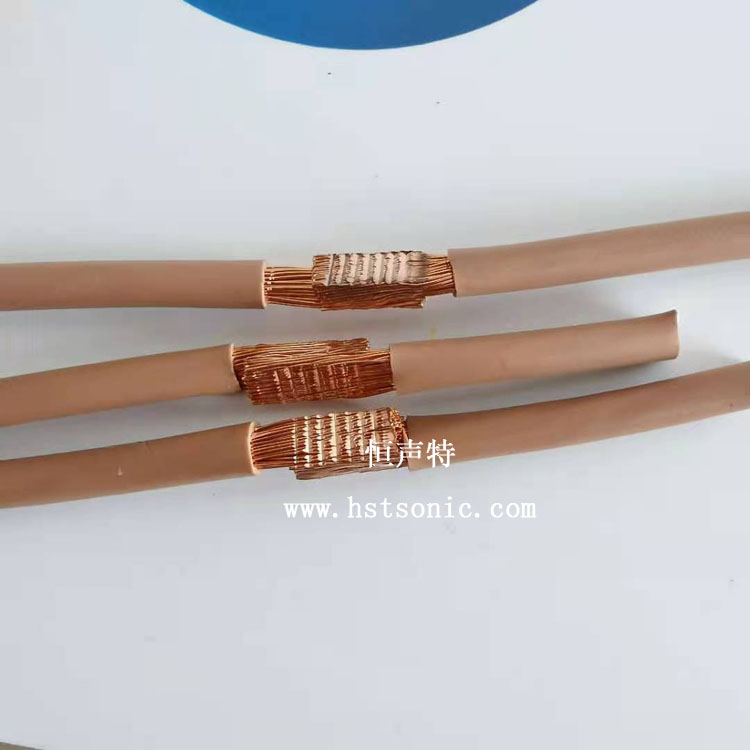 6平方線束搭接超聲波焊接設(shè)備是利用超聲波工藝焊接的,將兩根銅線搭接焊接,超聲波焊接強(qiáng)度牢固,適合用20K3000W超聲波線束焊接機(jī)焊接。